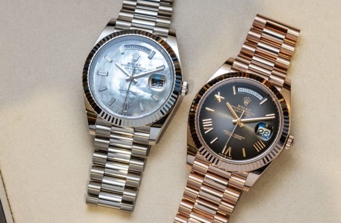What do you think of the current Rolex Day-Date 40 refs. 228239 (white gold, €53,650) and 228235 (rose gold, €48,000)? Let us know in the comments section below!
